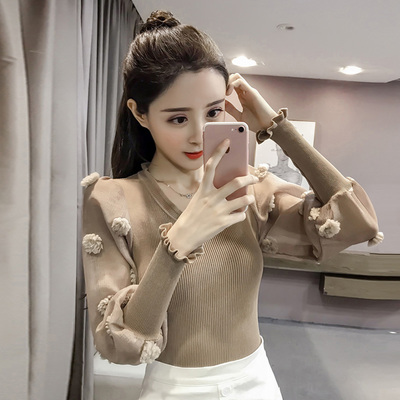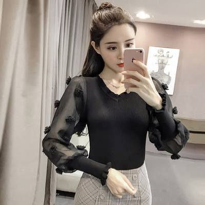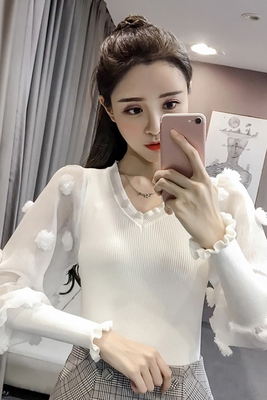 Mùa thu 2018 phiên bản Hàn Quốc của áo len dài tay cổ chữ V mới cho nữ khí chất giản dị Áo sơ mi mỏng mỏng các kiểu áo len