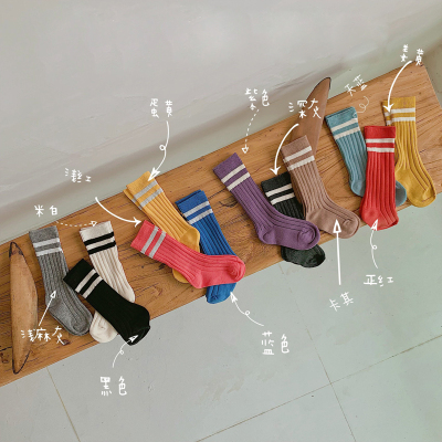 Mùa thu 2019 trẻ em mới vớ màu kẹo đôi sọc dọc trong vớ bé trai và bé gái chải vớ cotton hoang dã - Vớ shop đồ trẻ em