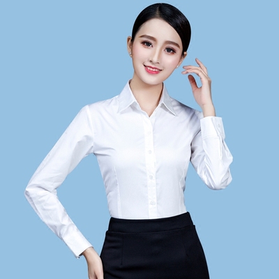 Mùa thu áo sơ mi nữ dài tay phỏng vấn váy áo mỏng Slim áo sơ mi trắng Quần yếm chuyên nghiệp áo sơ mi dài tay Áo sơ mi dài tay