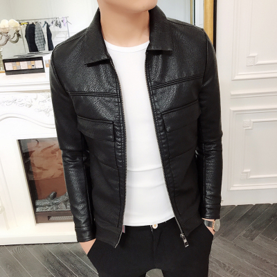 Mùa thu đông cộng với size nhỏ cổ áo ngắn cổ áo da phiên bản nhỏ của áo khoác mỏng PU áo khoác ngắn nhỏ S số XS quần áo nam - Quần áo lông thú áo khoác gió nam