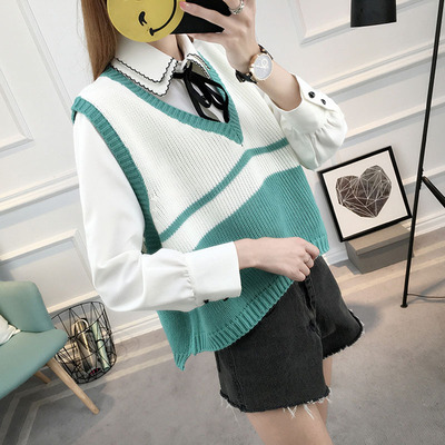 Mùa thu đông mới áo len không tay nữ Han Fan v cổ áo rộng hoang dã áo len áo len vest sinh viên áo phao nữ