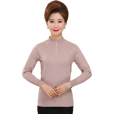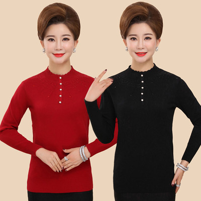 Mùa thu đông mới áo len nữ trung niên nửa cổ cao cơ sở áo dài tay mẹ đầm áo len mỏng cũ shop quần áo nữ