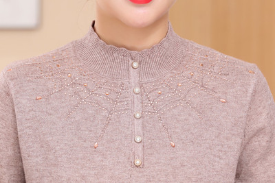 Mùa thu đông mới áo len nữ trung niên nửa cổ cao cơ sở áo dài tay mẹ đầm áo len mỏng cũ shop quần áo nữ Đan Cardigan