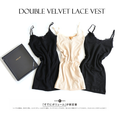 Mùa thu đông mới hai lớp siêu co giãn cộng với áo nhung ấm áp nữ V-cổ lông mi ren sling cơ sở nhựa áo kiểu công sở Áo ba lỗ