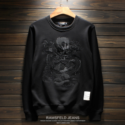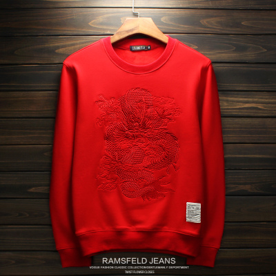 Mùa thu đông nam cổ tròn và áo len nhung Phong cách Trung Quốc thêu rồng đỏ áo thun thủy triều thương hiệu anh chàng xã hội đẹp trai áo hoodie cặp