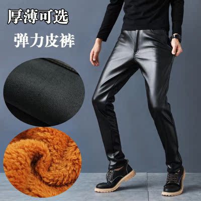 Mùa thu đông quần da nam phiên bản Hàn Quốc của đôi chân thủy canh tự chế đầu máy xe máy bó sát da trẻ trung cộng với nhung dày quần áo thể thao Quần da