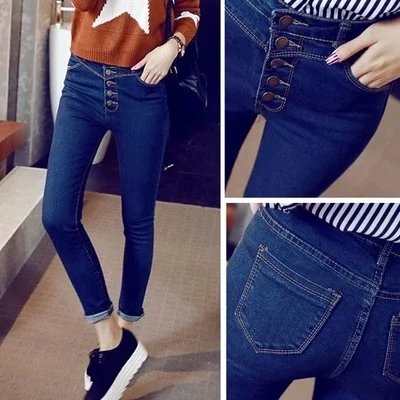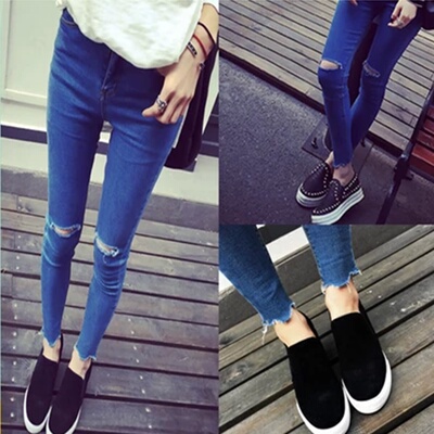 Mùa thu Hàn Quốc cao eo feet chín điểm jeans nữ Slim mỏng lỗ căng bút chì quần dài sinh viên chân váy bò