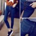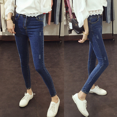 Mùa thu Hàn Quốc cao eo feet chín điểm jeans nữ Slim mỏng lỗ căng bút chì quần dài sinh viên chân váy bò Quần jean