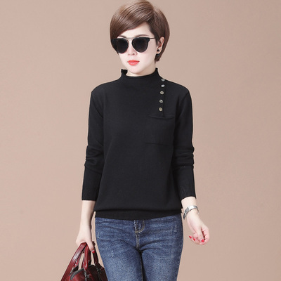 Mùa thu hơn nửa cao cổ áo dệt kim chạm đáy áo sơ mi nữ 2018 Thu đông mới phiên bản Hàn Quốc của áo len mỏng thon gọn shop quần áo nữ Đan Cardigan