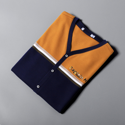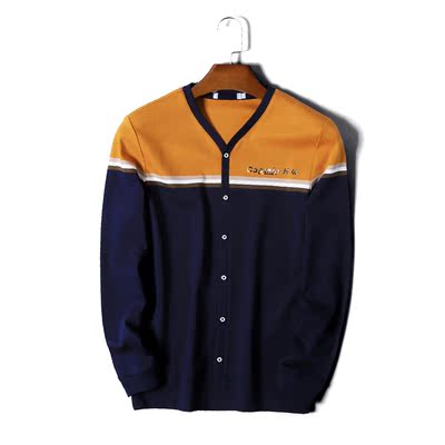 Mùa thu mới cotton mỏng tay áo dài thời trang Áo len mỏng giản dị cắt cờ tương phản màu áo len nam ao nam Hàng dệt kim