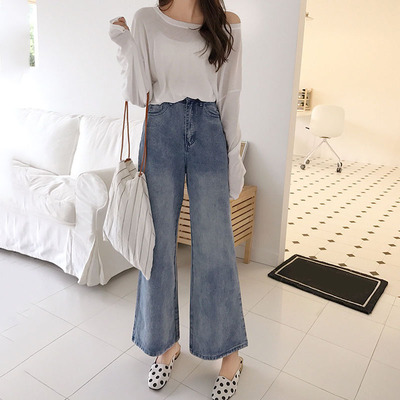 Mùa thu mới của Hàn Quốc phiên bản của retro sinh viên bf thẳng tính khí hoang dã jeans lỏng Hồng Kông quần chân rộng quần phụ nữ quần jean nữ cao cấp