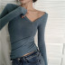 Mùa thu mới Hàn Quốc thời trang hoang dã cẩn thận máy top cổ chữ V không đều đan áo thun dài tay nữ lưới đỏ áo len nữ cộc tay Áo len cổ chữ V