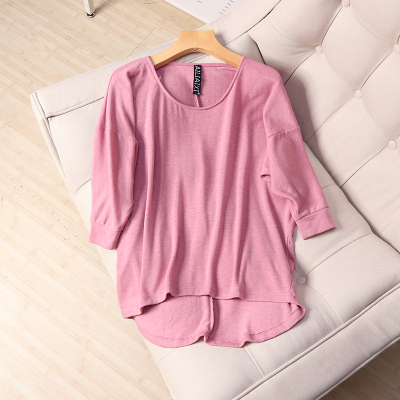 Mùa thu mới T-Shirt không đối xứng vòng cổ áo thun top nữ kích thước lớn loose bìa thịt áo sơ mi stretch shirt Ma9 áo phông ngắn tay Áo phông