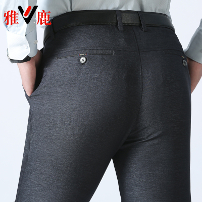Mùa thu mới Yalu quần nam trung niên kích thước lớn eo cao căng thẳng phù hợp với quần quần bố tải thẳng quần dài quần âu đen Suit phù hợp