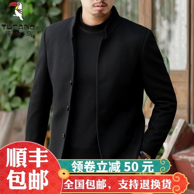 Mùa thu và mùa đông áo len len nam ngắn cổ áo cashmere cổ áo dày cộng với áo khoác cotton cha đặc biệt áo khoác len nam
