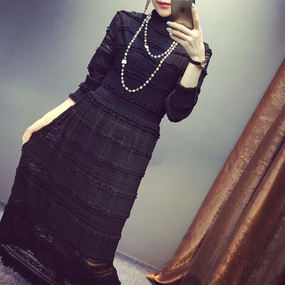 Mùa thu và mùa đông cổ tích cơ sở váy nữ phiên bản Hàn Quốc của eo rỗng màu trắng bên trong phần dài Một chiếc váy ren từ váy mẫu váy xòe 2020