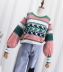 Mùa thu và mùa đông của phụ nữ áo len mới in hình học tương phản màu khảm đèn lồng tay áo áo len cổ tròn dài tay áo khoác áo khoác len cardigan
