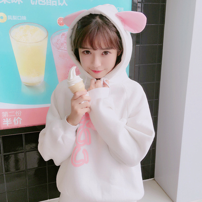 Mùa thu và mùa đông của phụ nữ ngọt ngào và đáng yêu mềm chị cộng với nhung trùm đầu tai thỏ áo len mỏng cao đẳng gió lỏng dài tay áo sơ mi măng tô nữ Áo len
