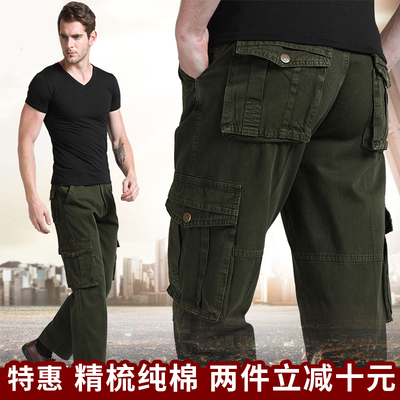 Mùa thu và mùa đông dày quần yếm quần nam nhiều túi thẳng quần giản dị nam rộng quần cỡ lớn quần jean nam hàng hiệu