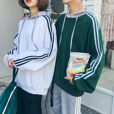 Mùa thu và mùa đông Hàn Quốc ulzzang ba thanh màu trùm đầu mũ trùm đầu gió cộng với áo len nhung nam và áo khoác nữ áo hoodie cộc tay