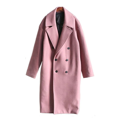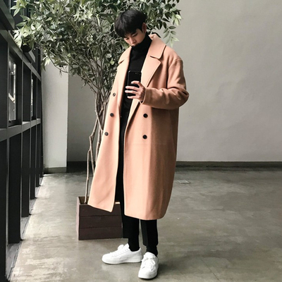 Mùa thu và mùa đông mới áo khoác cashmere màu hồng nam dài qua đầu gối Phiên bản Hàn Quốc của áo khoác len đôi ngực nam áo ấm nam