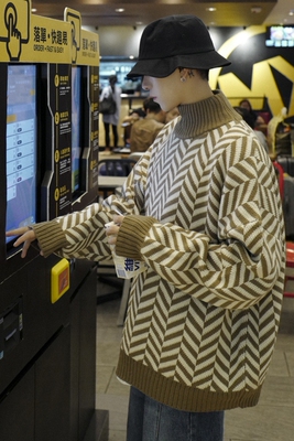 Mùa thu và mùa đông mới nhỏ hình học áo len nửa cổ áo sơ mi cổ điển Nhật Bản lỏng lẻo ấm áp áo len đáy quần nam áo khoác len nam