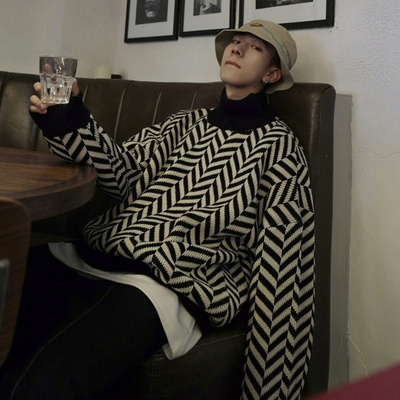 Mùa thu và mùa đông mới nhỏ hình học áo len nửa cổ áo sơ mi cổ điển Nhật Bản lỏng lẻo ấm áp áo len đáy quần nam áo khoác len nam Áo len cổ tròn