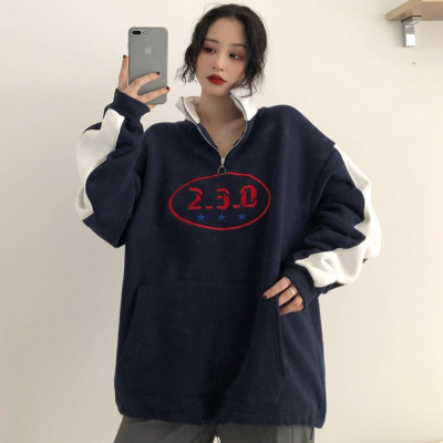 Mùa thu và mùa đông Phiên bản Hàn Quốc của phiên bản Hàn Quốc mới cộng với nhung dày khâu lỏng áo len trường đại học áo len nữ áo thủy triều quần áo nữ mùa hè đẹp
