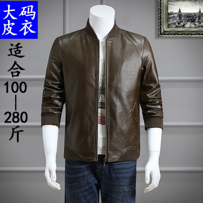 Mùa thu và mùa đông quần áo da nam người đàn ông trẻ béo cộng với phân bón áo khoác da XL pu lỏng áo khoác da cha giản dị - Quần áo lông thú áo gió uniqlo