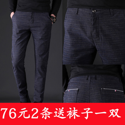 Mùa thu và mùa đông quần cotton và vải lanh nam thanh niên Phiên bản Hàn Quốc của thủy triều Slim nhỏ thẳng sandal thoáng khí mùa thu và mùa đông quần dài nam quần thể thao nam Quần tây thường