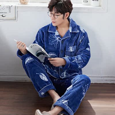 Mùa thu và mùa đông san hô lông cừu cộng với đồ ngủ nhung nam XL dài tay phù hợp với flannel cardigan dày dịch vụ nhà phù hợp pijama Bộ Pajama