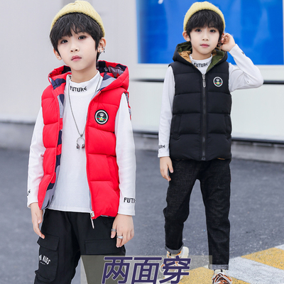 Mùa thu và mùa đông trẻ em xuống áo bông trong áo vest nam và nữ lớn hai mặt mặc áo khoác học sinh trung học cơ sở áo khoác vai dày - Áo ghi lê áo gile len trẻ em Áo ghi lê