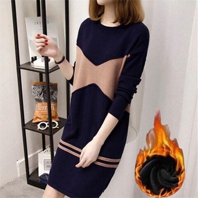 Mùa thu và váy mùa đông size lớn của phụ nữ dài tay cổ tròn thon thả thon dài phần túi hông dưới khí chất một váy - A-Line Váy mẫu váy xòe
