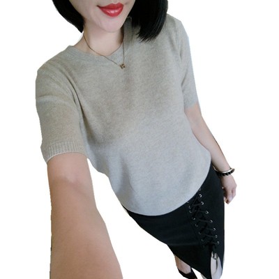 Mùa xuân 2018 và áo mới cổ tròn áo len len ngắn tay áo len nữ phiên bản Hàn Quốc của áo dệt kim nửa tay đan dây mảnh thời trang nữ 2021