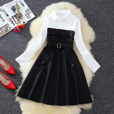Mùa xuân 2019 của phụ nữ Hàn Quốc thời trang áo sơ mi váy là eo mỏng áo gió váy nữ dài tay một từ váy - A-Line Váy váy chữ a dài liền thân