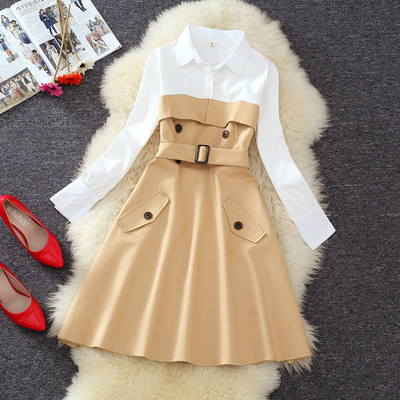 Mùa xuân 2019 của phụ nữ Hàn Quốc thời trang áo sơ mi váy là eo mỏng áo gió váy nữ dài tay một từ váy - A-Line Váy váy chữ a dài liền thân A-Line Váy