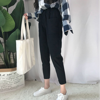 Mùa xuân mới của Hàn Quốc phiên bản của hoang dã đàn hồi eo là mỏng chân quần quần âu nữ bf lỏng chín điểm harem quần sinh viên quần thun dài nữ
