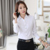 Mùa xuân, mùa hè, mùa thu và mùa đông, đáy triều, Han Fan Slim khí chất màu xanh cổ chữ V tay dài màu trắng của nữ sinh viên đại học gió hoang áo sơ mi nữ dài tay màu đen Áo sơ mi dài tay