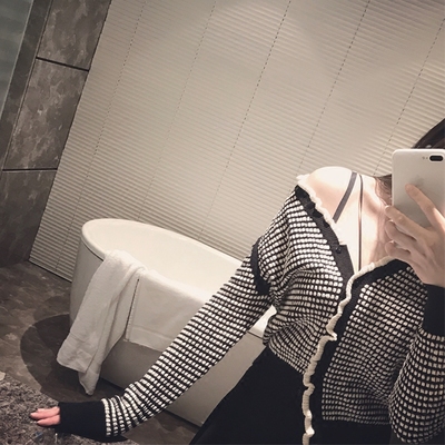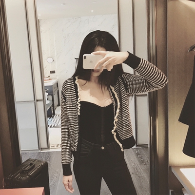 Mùa xuân năm 2018 phụ nữ mới của áo len cardigan áo len mùa thu đoạn ngắn nhỏ bên ngoài thiết lập trạm Châu Âu đầu mùa thu áo len gile Cardigan