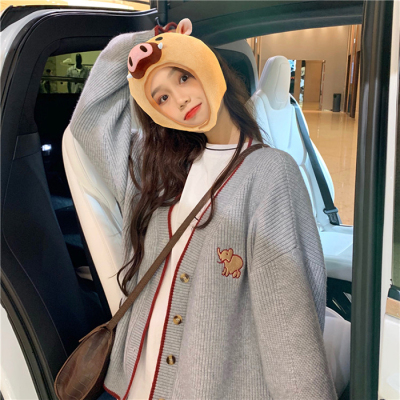 Mùa xuân phiên bản Hàn Quốc của áo cổ chữ V thêu lỏng Hồng Kông hương vị áo len gió áo len nữ áo len in hình chic chic - Đan Cardigan áo len Đan Cardigan