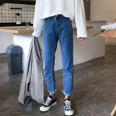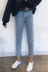 Mùa xuân phụ nữ Hàn Quốc phiên bản của lỏng hoang dã thẳng quần cao eo nguyên jeans chín quần sinh viên chân quần quần quần jean nữ lưng cao