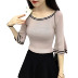 Mùa xuân và mùa hè mới trumpet tay áo đầu chặt chẽ áo len bảy điểm tay áo vòng cổ hoang dã của phụ nữ áo sơ mi trong tay áo len áo len nữ công sở