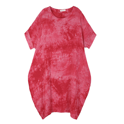 Mùa xuân và mùa hè phong cách mới váy dài béo mm lỏng kích thước lớn của phụ nữ xếp li nghệ thuật giảm béo váy cỡ lớn tay ngắn váy len dài hàn quốc Váy dài