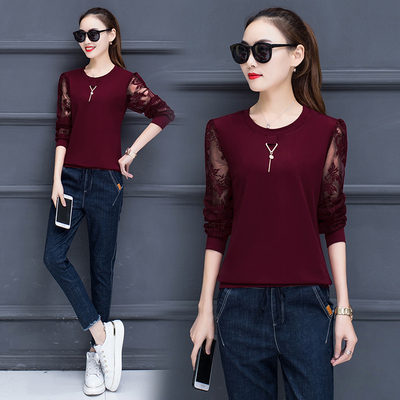 Mùa xuân và mùa thu áo thun dài tay rộng bên ngoài mặc áo sơ mi cotton nhỏ áo sơ mi nữ trung niên 40-50 tuổi quần áo mẹ kiểu áo trung niên Quần áo của mẹ