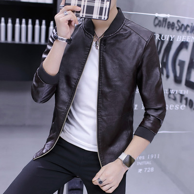 Mùa xuân và mùa thu chéo chéo áo khoác da nam mùa xuân và mùa thu trưởng thành với một cổ áo lớn mùa đông áo khoác da U Pew áo khoác cặp