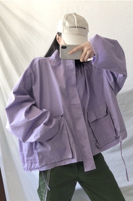 Mùa xuân và mùa thu Hàn Quốc của ulzzang Harajuku bf gió lỏng đứng cổ áo công cụ màu rắn áo khoác ngắn áo khoác nữ sinh viên áo da nữ đẹp