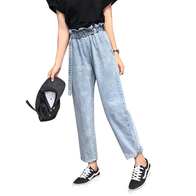 Mùa xuân và Mùa Thu Hàn Quốc phiên bản của cao eo lỏng quần hậu cung quần chân rộng quần jean hoa mỏng thẳng quần chín quần sinh viên nữ quần áo nữ mùa hè đẹp