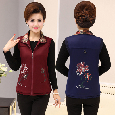 Mùa xuân và mùa thu mô hình trung và cũ tuổi của phụ nữ vest mỏng vest kích thước lớn mẹ nạp vest giản dị vest ngắn áo khoác áo khoác nữ cao cấp