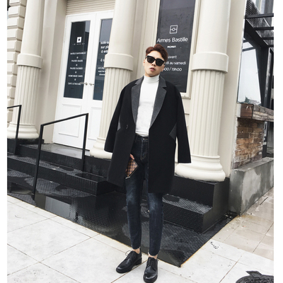 Mustache shop 2018 thời trang mùa đông màu sắc phù hợp với chăn bông dày phần dài áo khoác len phiên bản nam Hàn Quốc áo khoác nam 2021