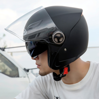 Mustang mùa hè xe máy điện mũ bảo hiểm nam nửa mũ bảo hiểm nữ đôi ống kính đầu máy nửa mũ bảo hiểm bốn mùa phổ quát - Xe máy Rider thiết bị băng bảo vệ khớp gối